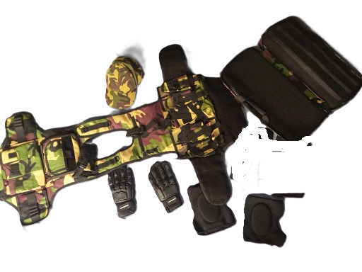 1- TACTICAL VEST CAMO, 1- MALA MARCADOR CAMO, 1- LUVAS FULL FINGERS ;1 - PROTECÇÃO DE JOELHOS, 1- CAP CAMO. * TRANSPORTE GRATIS: SÓ VALIDO PARA PORTUGAL CONTINENTAL.
